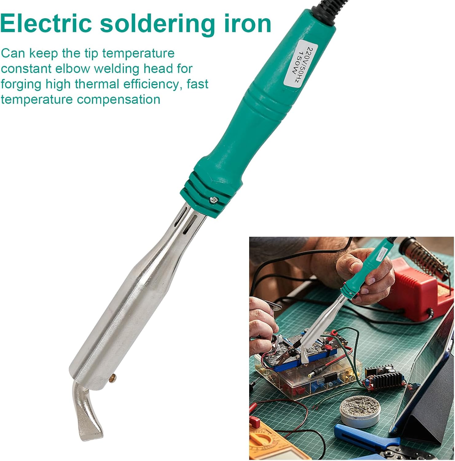150W Electric Soldering Iron with Iron Clad and Bent Chisel Copper Tip