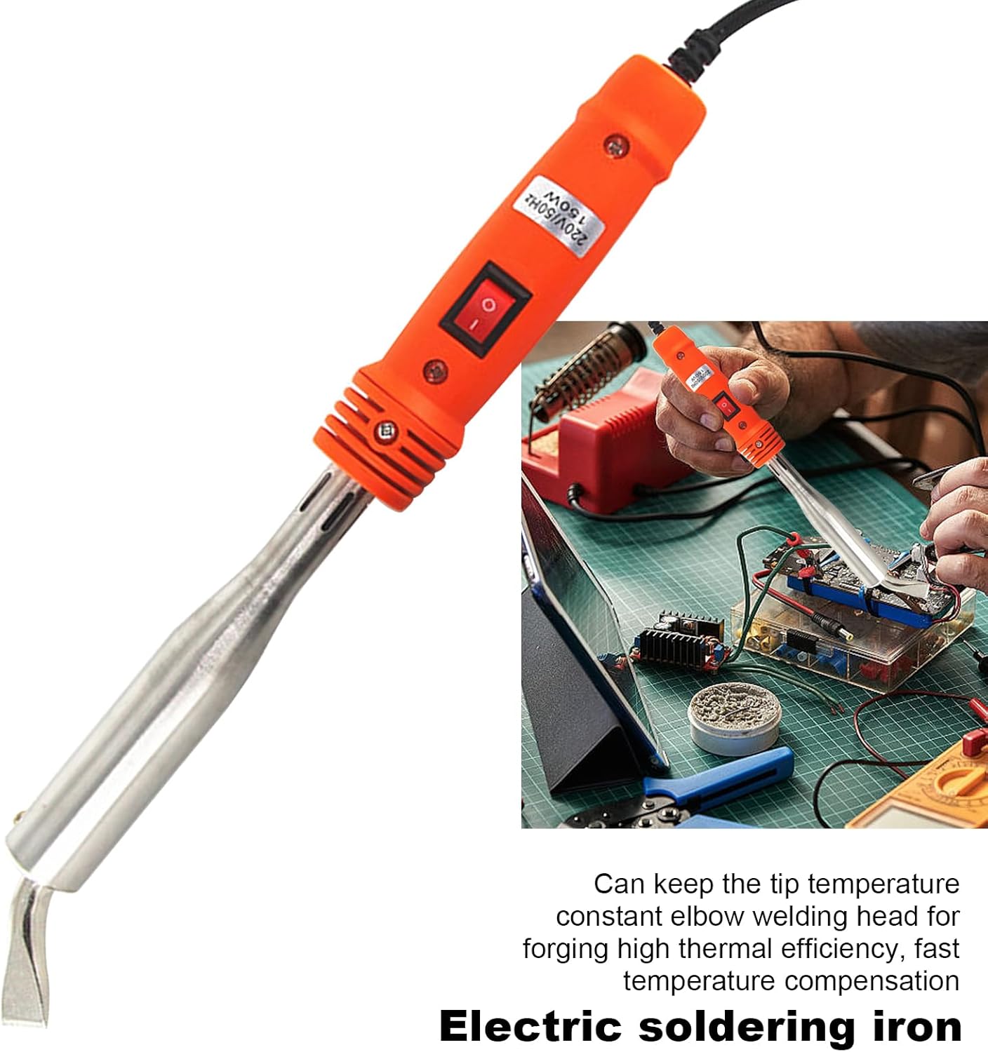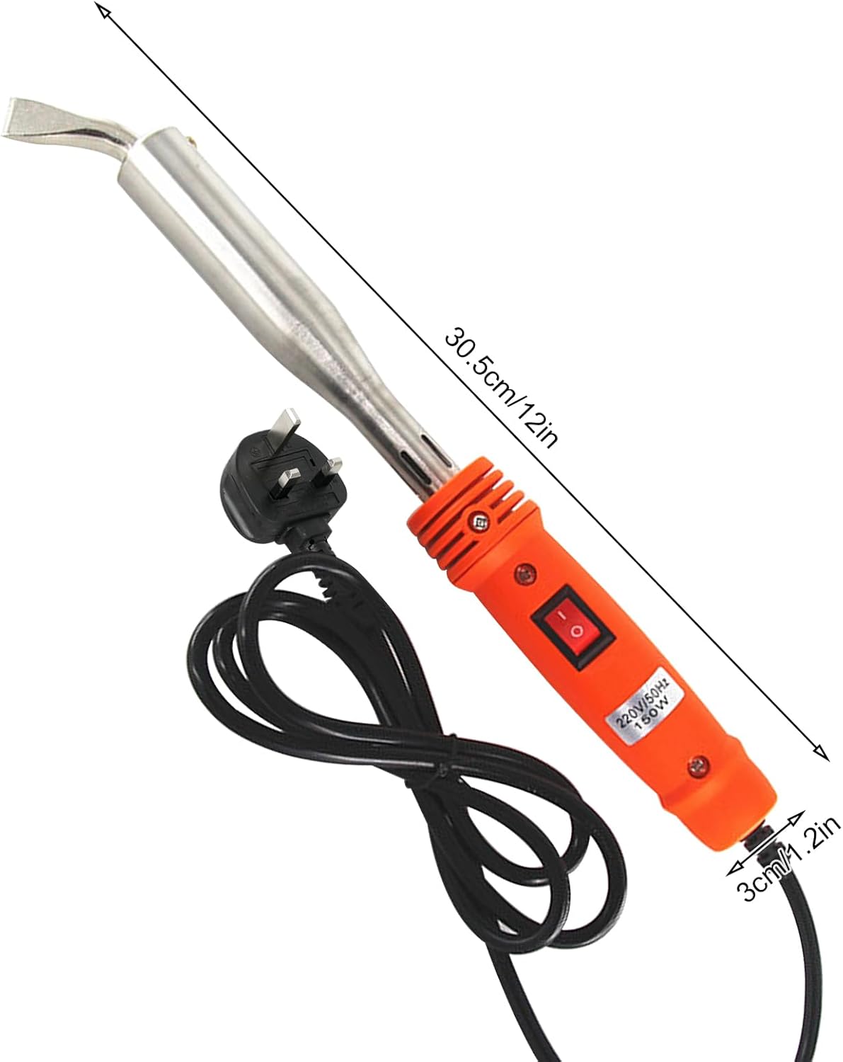 150W Electric Soldering Iron with Iron Clad and On/Off Switch, Bent Chisel Tip
