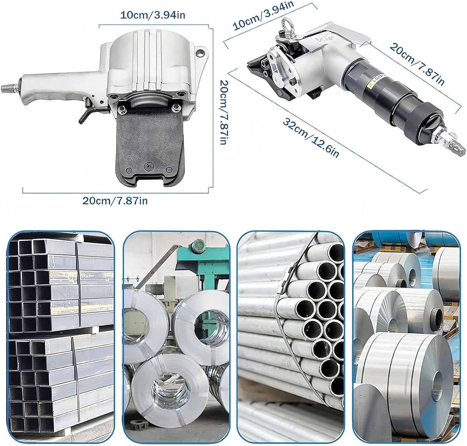 The FTLS19-32 Pneumatic Steel Strapping Machine is a heavy-duty industrial strapping tool designed for efficient, buckle-free strapping of steel coils, pipes, and other large metal packages. Built with a full metal body and high-precision jaws, it supports steel straps from 32mm wide and 0.8mm to 1.2mm thick. This machine uses friction welding technology for tight and reliable seals without the need for clips or buckles, ideal for applications requiring strong tensioning and high-speed operation. Whether in factories, warehouses, or steel processing yards, it provides durable and safe strapping under continuous use.