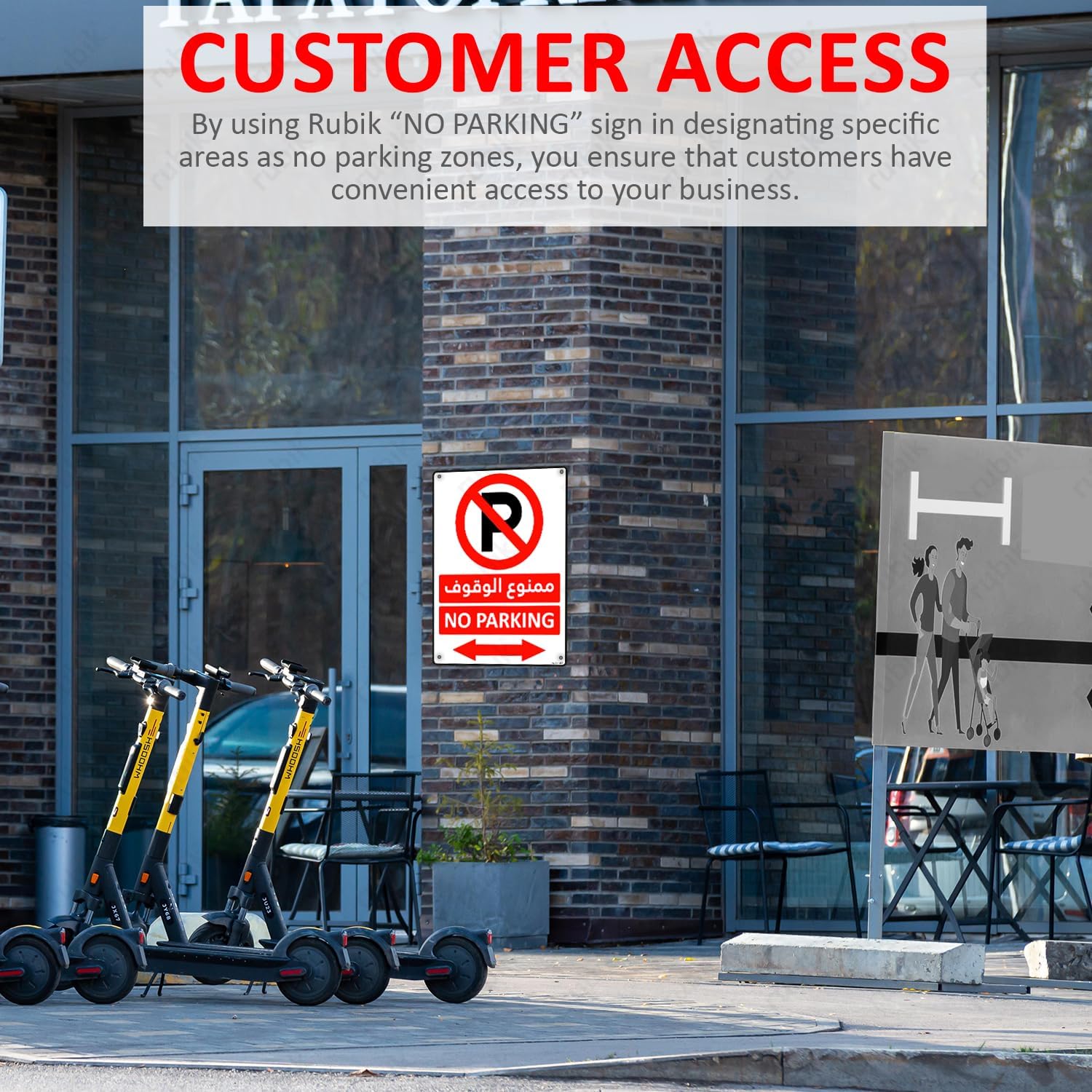 This premium acrylic no parking sign features bilingual Arabic and English text for clear communication in any facility. Constructed from durable weather-resistant plastic with UV fade protection, this 30x21cm A4-sized sign maintains its highly reflective surface for maximum visibility in all lighting conditions, ensuring unauthorized parking is effectively discouraged.