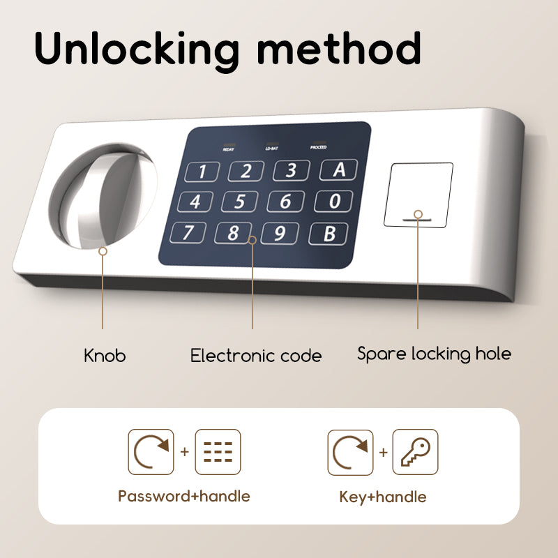 Two emergency keys are included. If the batteries are empty or the password is forgotten the safe can be unlocked with the key.