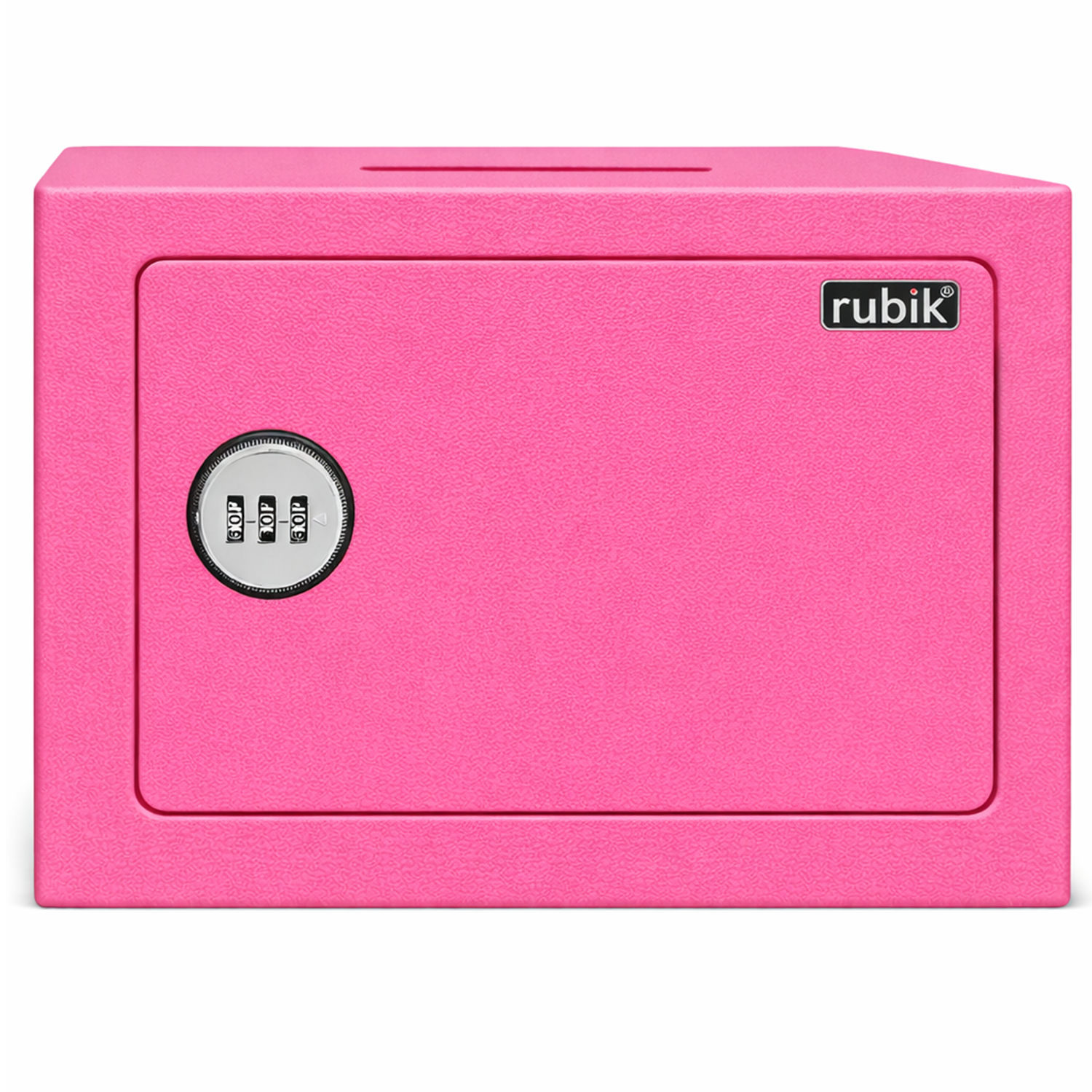 Rubik basic combination lock safe box with integrated drop slot for secure deposits. Keyless operation with programmable 3-digit code eliminates key management concerns. Steel construction with powder coating finish provides durable protection for cash, receipts, documents, jewellery, passports, and valuables.