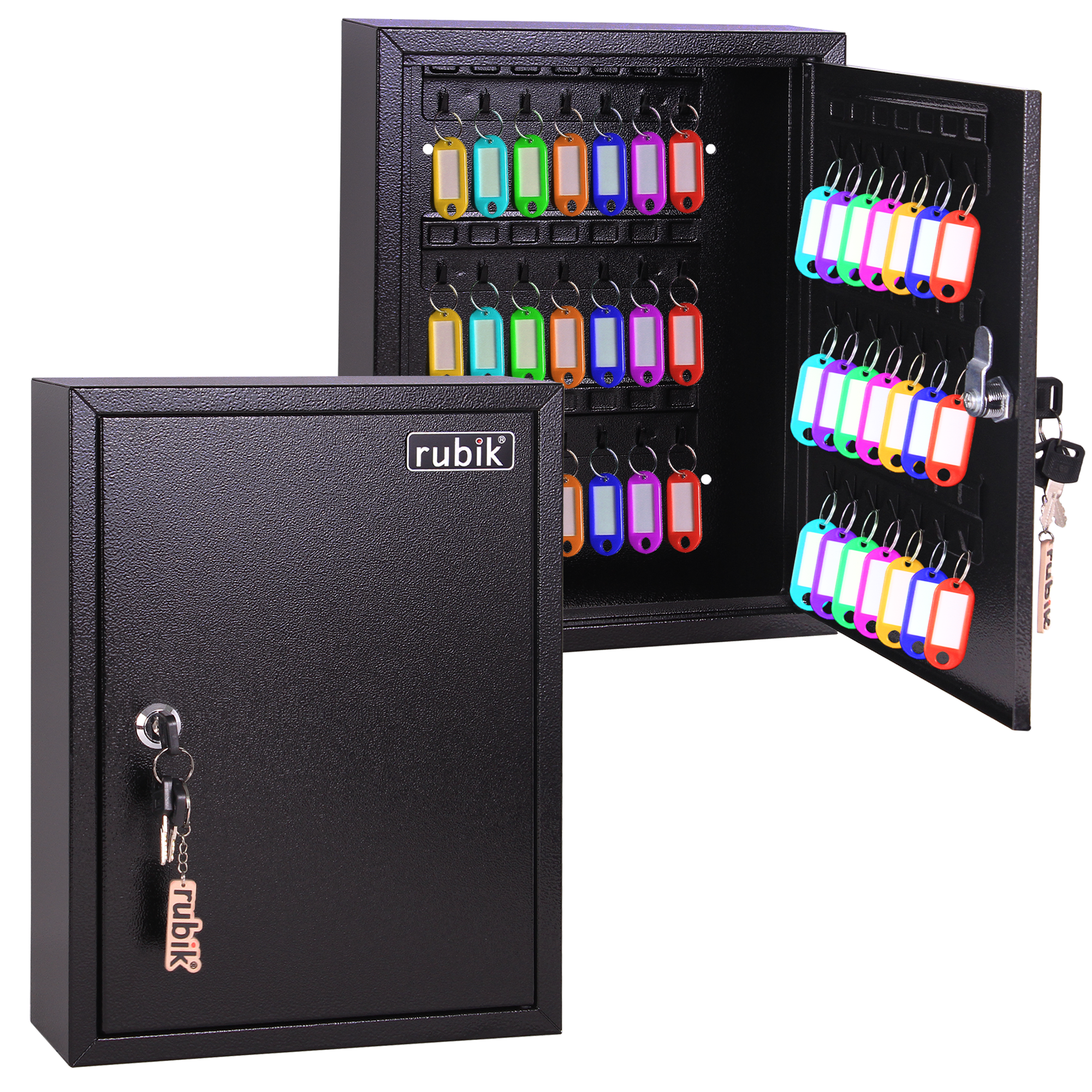 This professional 42 keys capacity full-metal Rubik key storage lock box (safe box) provides secure and organized storage for multiple keys with mechanical key lock. Designed for commercial use, wall mounted, it features a simple key lock mechanism and a durable powder-coated steel body with smooth, rounded corners for safety and appearance.