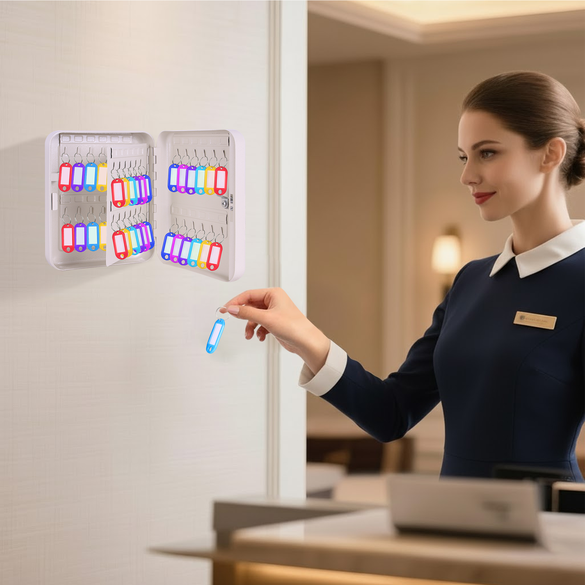 This 48 keys capacity full-metal Rubik key storage lock box (safe box) provides secure and organized storage for multiple keys with mechanical key lock. Designed for both residential and commercial use, it features a simple key lock mechanism and a durable powder-coated steel body with smooth, rounded corners for safety and appearance.