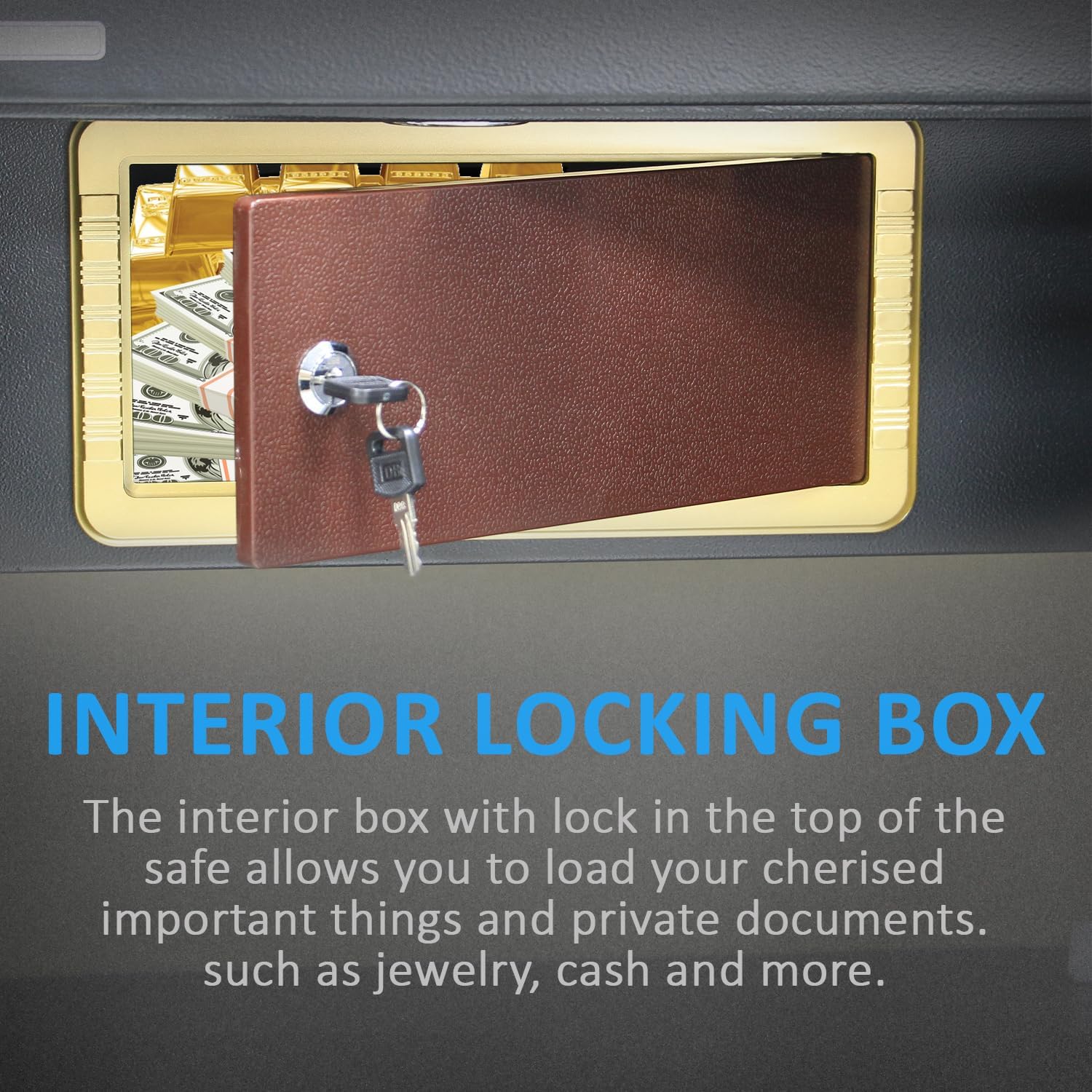 - Small internal compartment with key lock