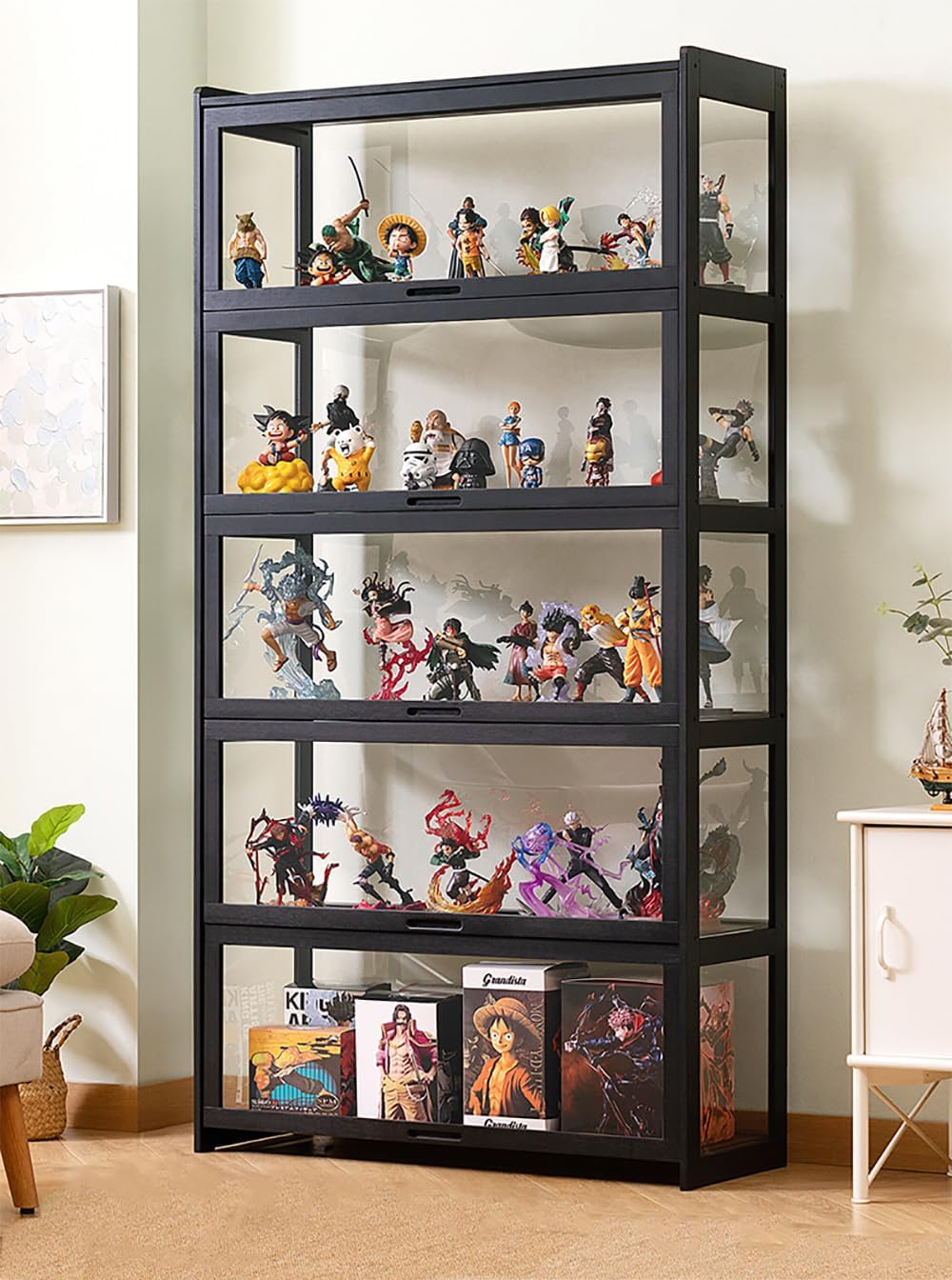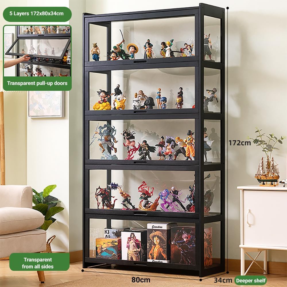 This versatile display showcase cabinet is freestanding and lightweight, provides ample space for displaying your collection such as Action Figures, Toys, Samples, Lego Block Art, Miniatures, your books, family photos, potted plants, collectibles, and more, adding a touch of modern elegance to any room.