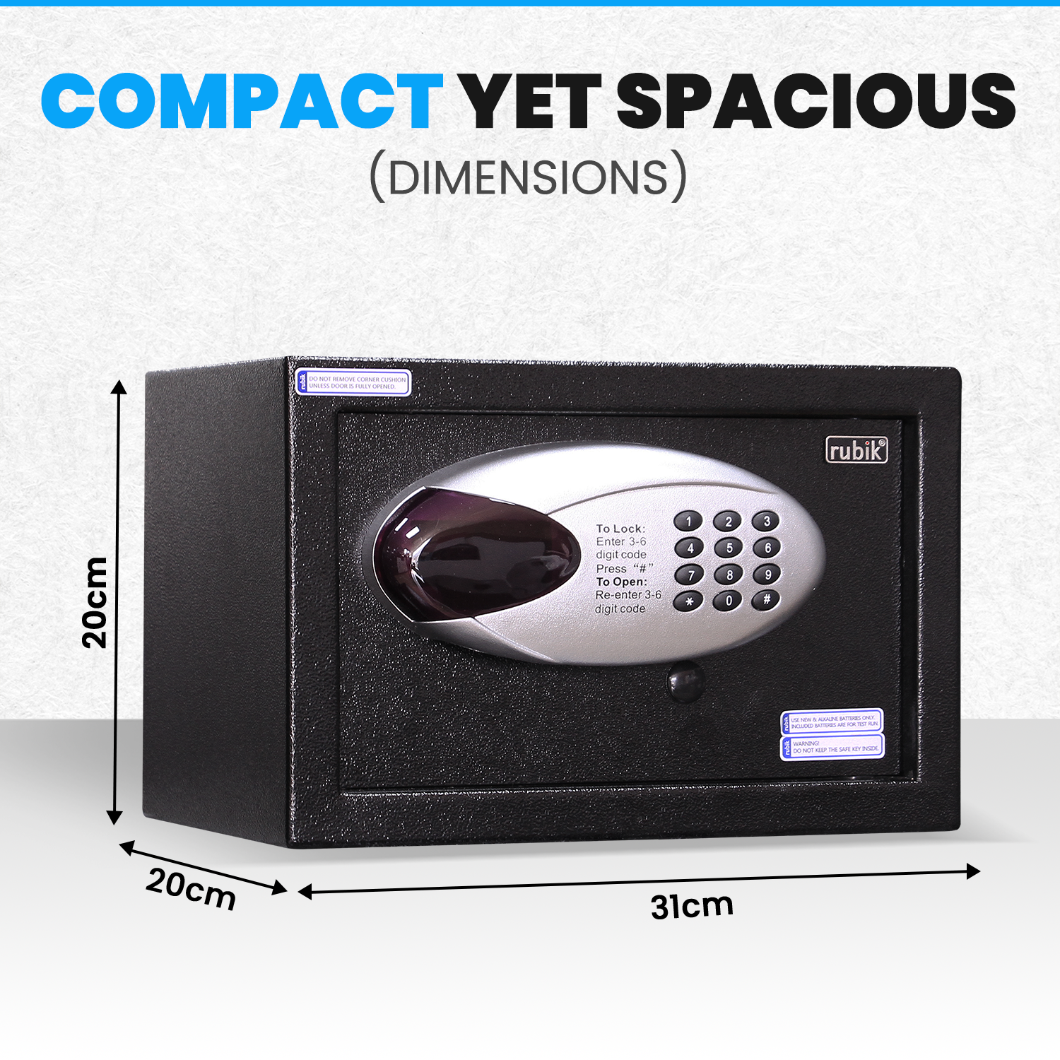 9. Compact Size with Ample Space: With product dimensions of H20cm x W31cm x D20cm and a weight of 5.5kg (approx), the Rubik safe box is compact yet spacious enough to accommodate your cash, money, papers, and other essential items.