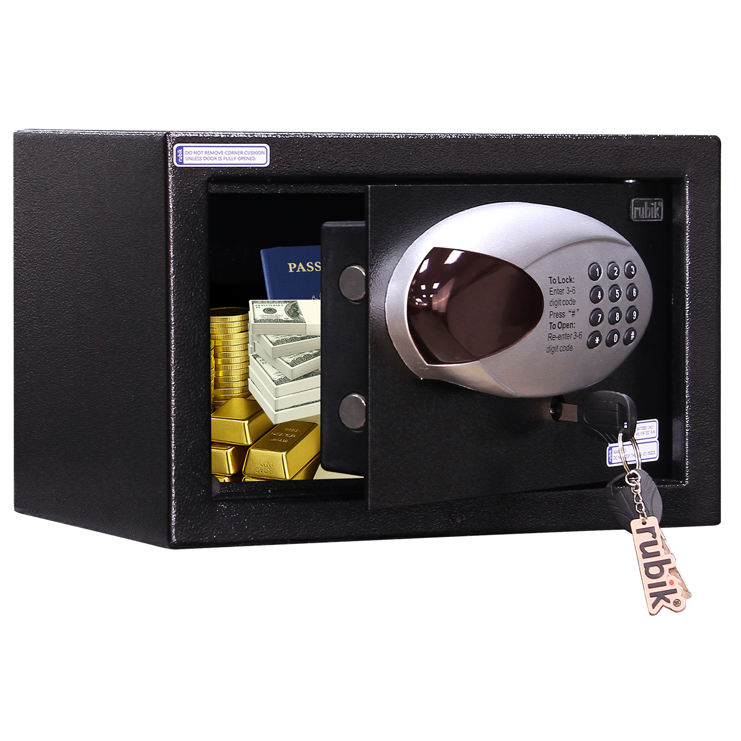7. Emergency Ready: Equipped with manual Key Lock, comes with common emergency override keys, the Rubik safe ensures access using these keys even if you forget your pin codes or if batteries deplete.