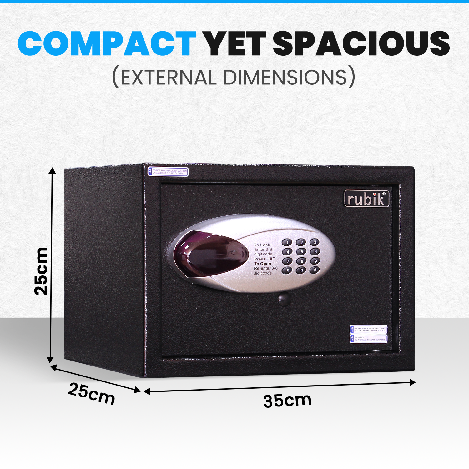 9. Compact Size with Ample Space: With product dimensions of H25cm x W35cm x D25cm and a weight of 8kg (approx), the Rubik safe box is compact yet spacious enough to accommodate your cash, money, papers, and other essential items.