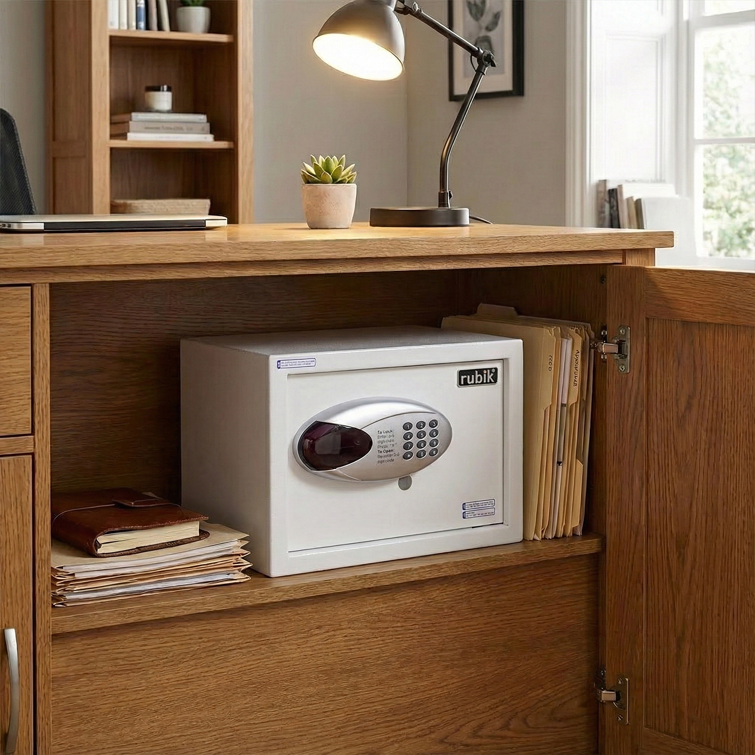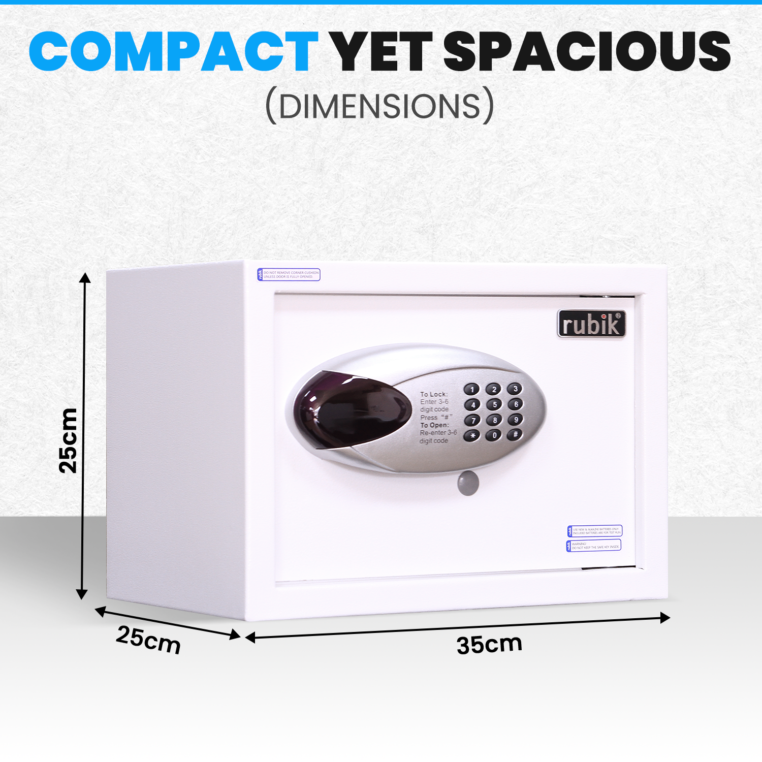 Compact Size with Ample Space: With product dimensions of H25cm x W35cm x D25cm and a weight of 8kg (approx), the Rubik safe box is compact yet spacious enough to accommodate your cash, money, papers, and other essential items.