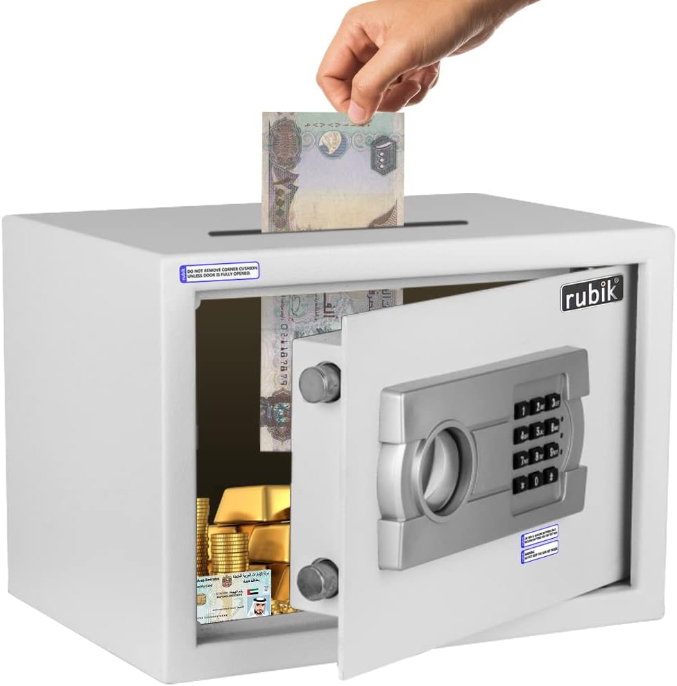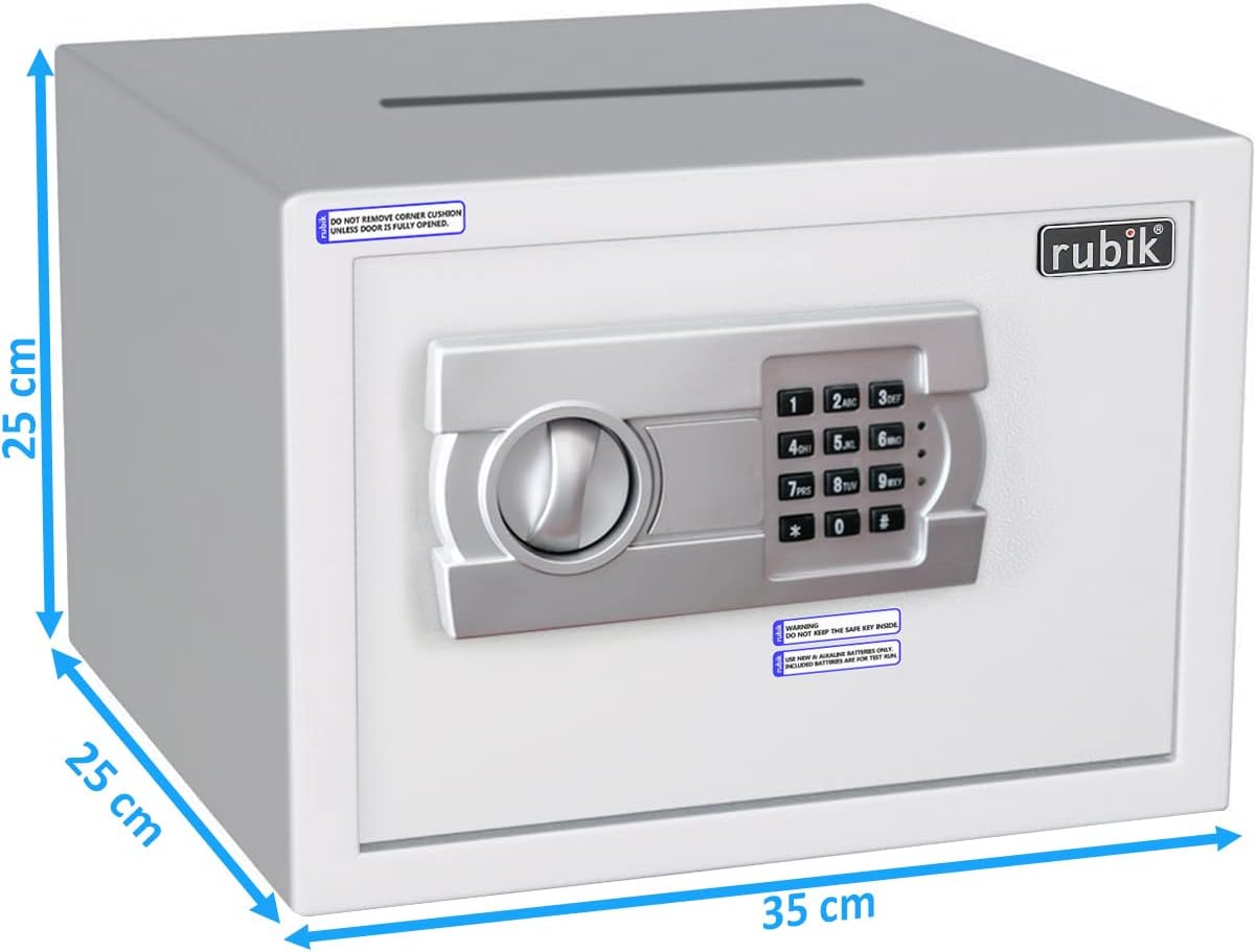 Compact Size with Ample Space: With product dimensions of H25cm x W35cm x D25cm and a weight of 8.5kg (approx), the Rubik safe box is compact yet spacious enough to accommodate your cash, money, papers, and other essential items.