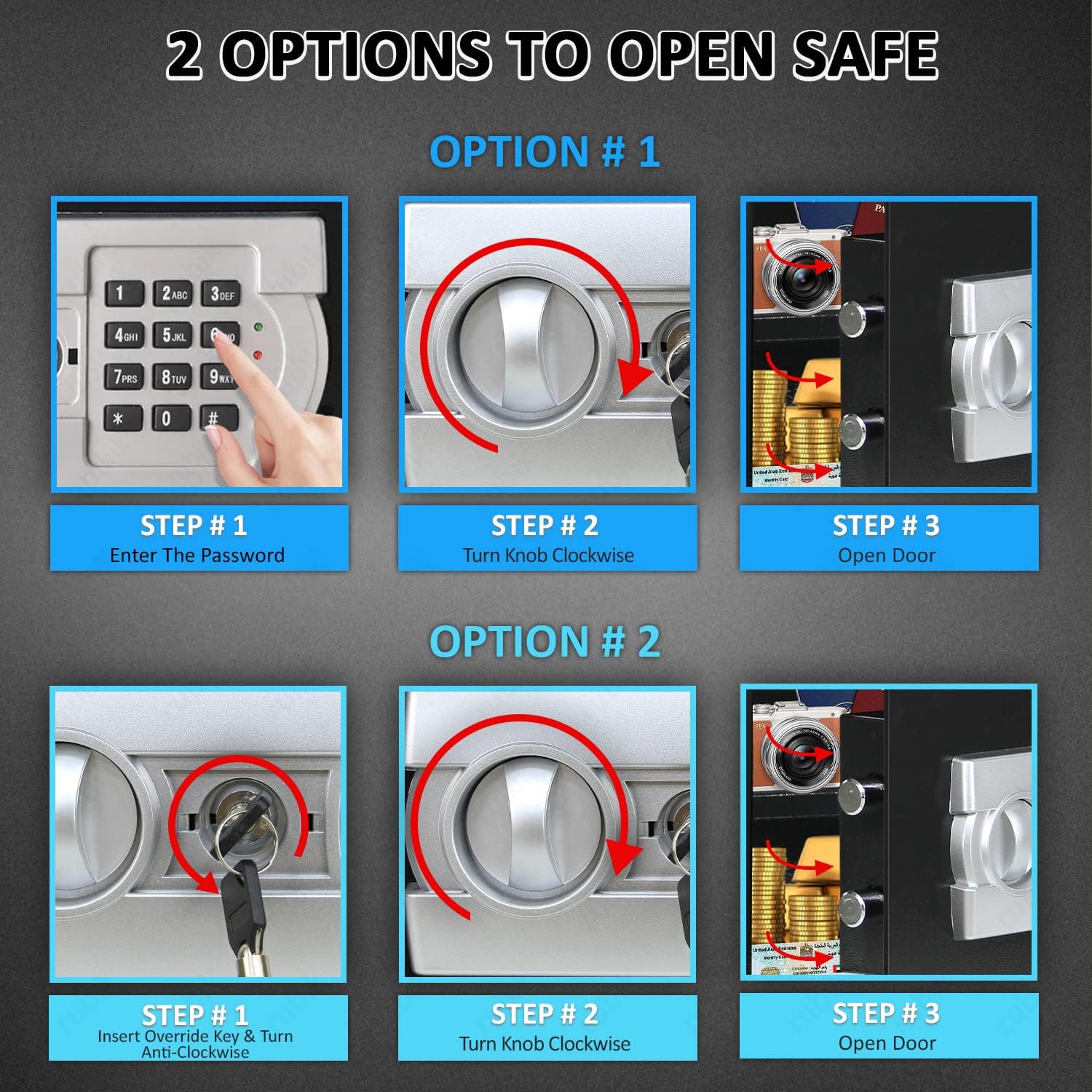 Multipurpose Use: Ideal for various uses, this safe accommodates cash, jewelry, watches, gold, passports, and more. A reliable solution for your security needs.