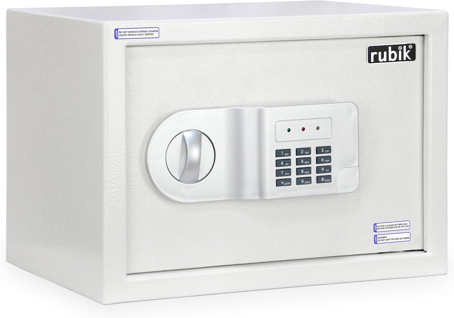 Rubik Medium Digital Safe Box with Pin Code and Keys, RB25AJ (25x35x25cm) White
