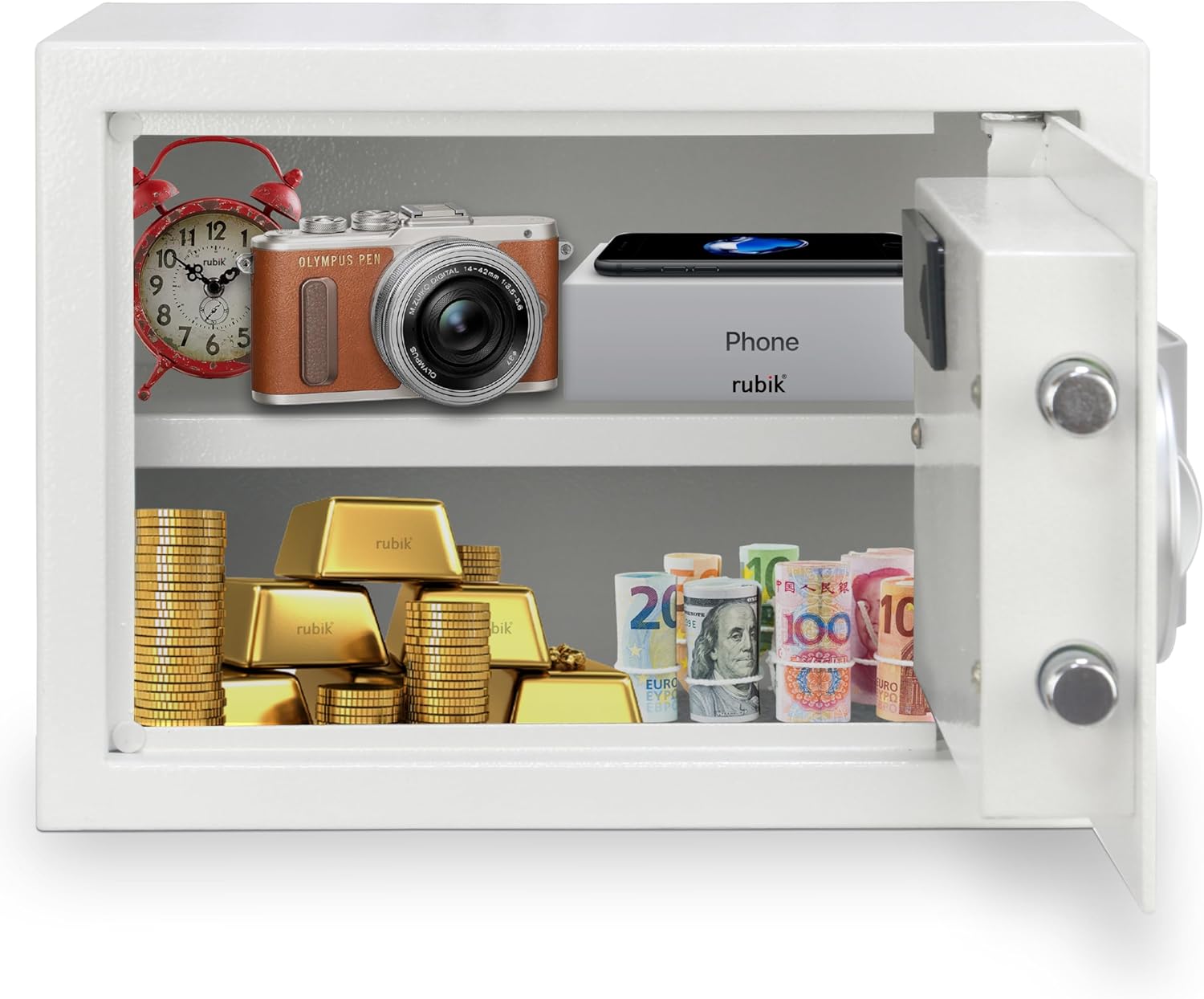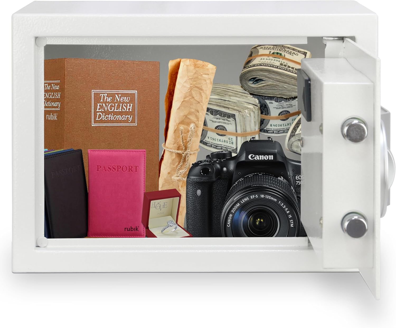 Compact Size with Ample Space: With product dimensions of H25cm x W35cm x D25cm and a weight of 8.5kg (approx), the Rubik safe box is compact yet spacious enough to accommodate your cash, money, papers, and other essential items.