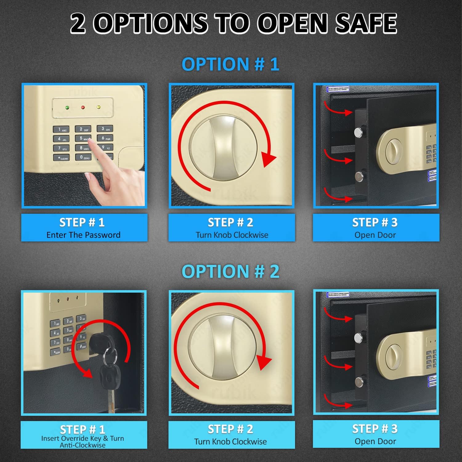 Emergency Ready: Equipped with manual Key Lock, comes with 2 computer cut emergency override keys, the Rubik safe ensures access using these keys even if you forget your pin codes or if batteries deplete.