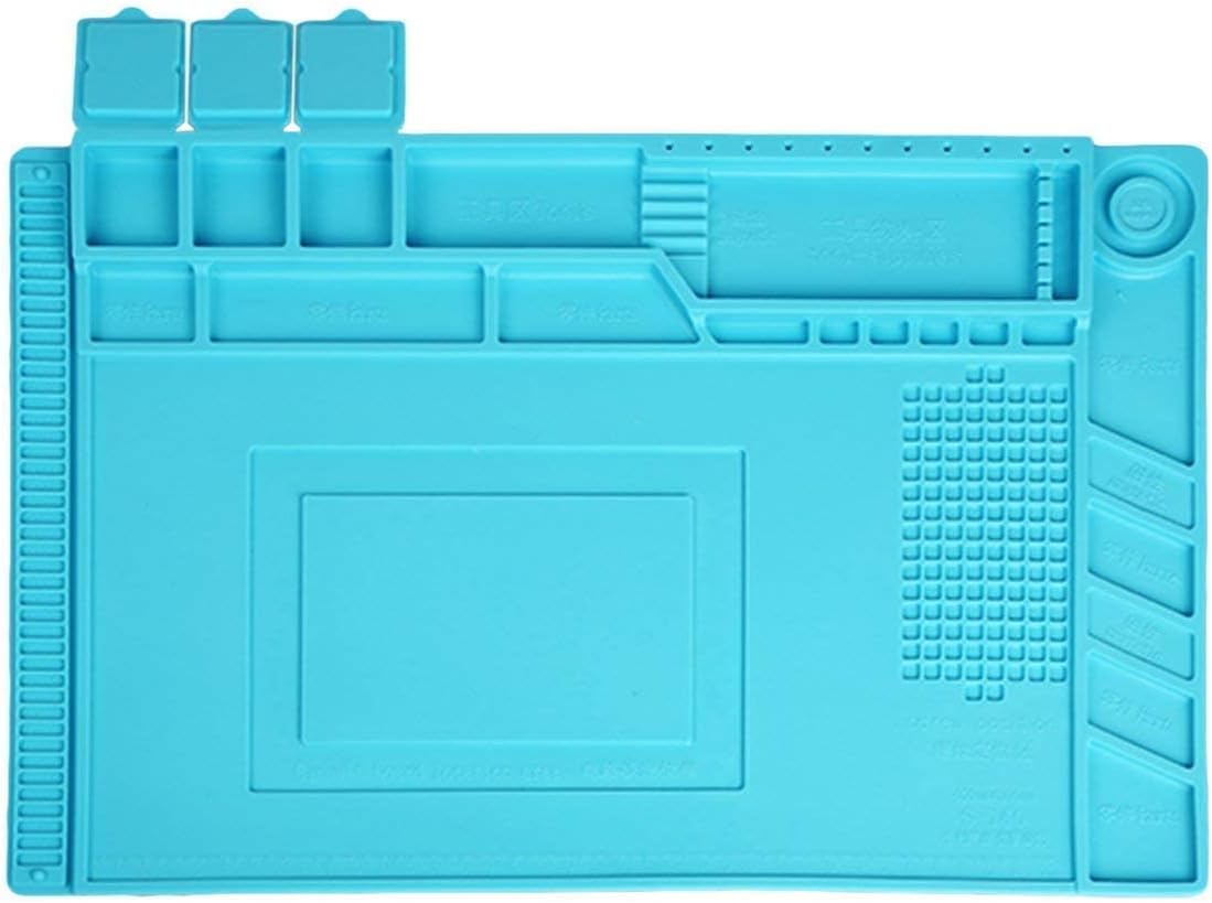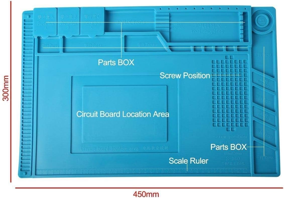 The S-160 Silicone repair work mat is a multi-function, heat-resistant soldering and electronics repair station designed for precision work. Built from high-quality silicone, it resists corrosion, deformation, and heat making it a reliable surface for electronics assembly, circuit board repair, and component soldering.