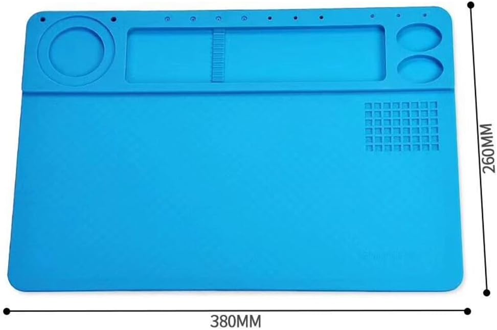 The TE-602 Silicone Soldering Mat (38x26cm) is a premium anti-static, heat-resistant work surface designed for electronics repair professionals and hobbyists. Made from high-quality flexible silicone, it protects your workbench from heat damage, prevents static discharge, and keeps small components organized during BGA soldering, phone, laptop, tablet, and circuit board repair.