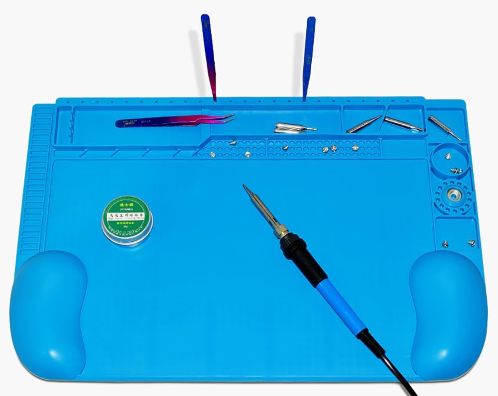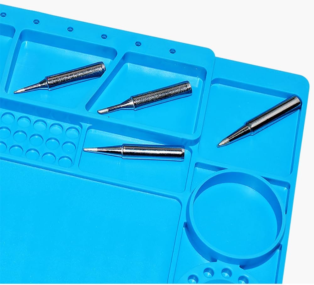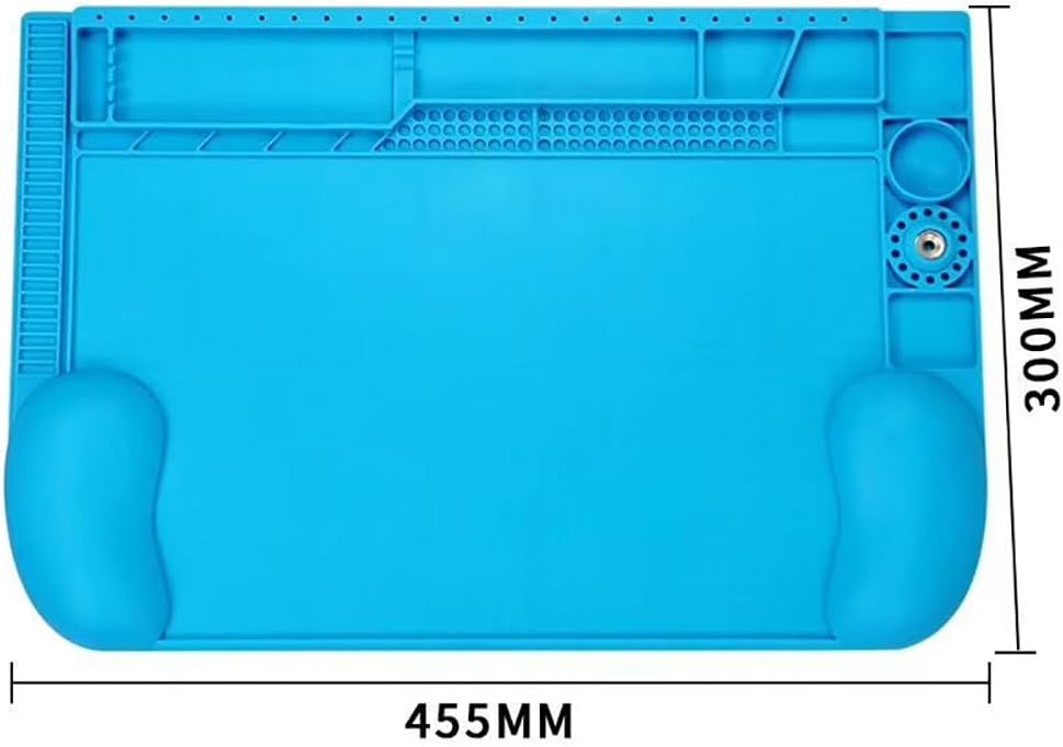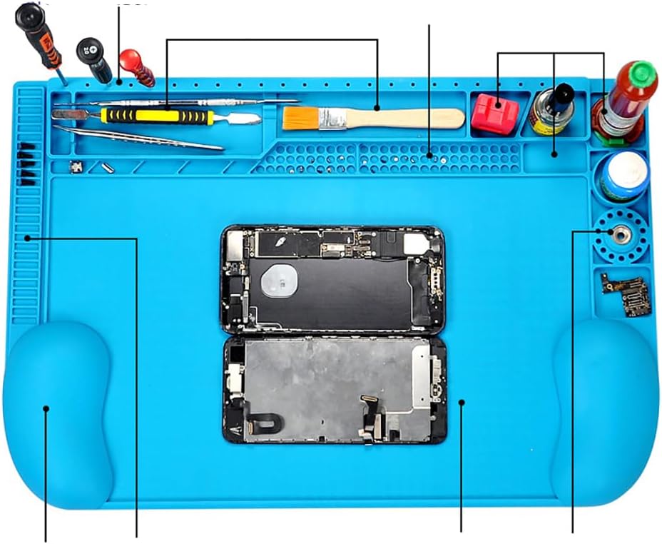 The TE-604 Silicone Soldering Mat (45×30cm) is a professional-grade anti-static work surface built for electronics repair technicians. Made from premium non-toxic, non-slip silicone, it withstands extreme heat up to 450°C (842°F) while keeping your workbench protected and your components organized during BGA soldering, phone, laptop, and circuit board repairs.
