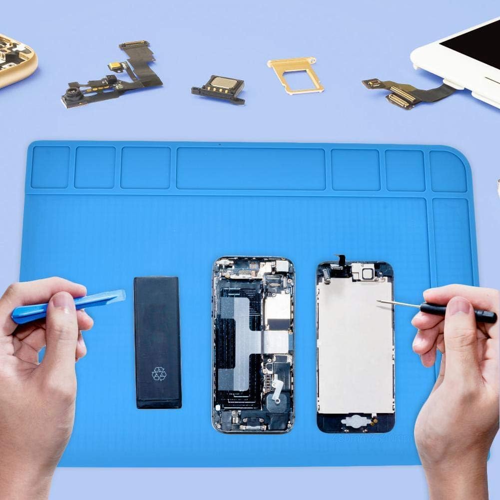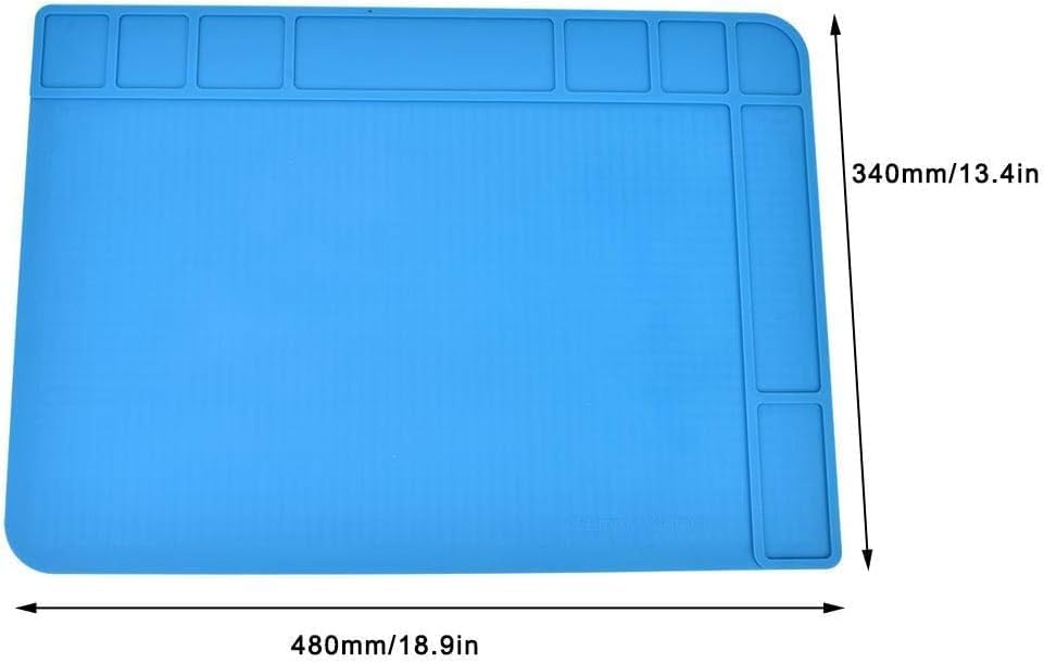 The TE-508 Silicone Soldering Mat (48x34cm) is a premium anti-static work surface designed for electronics repair and assembly. Made from high-quality, non-toxic, flexible silicone, it protects your workbench from heat damage while keeping small components organized during BGA soldering, phone, laptop, tablet, and circuit board repair.