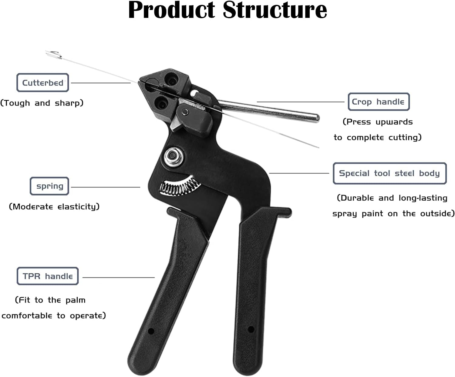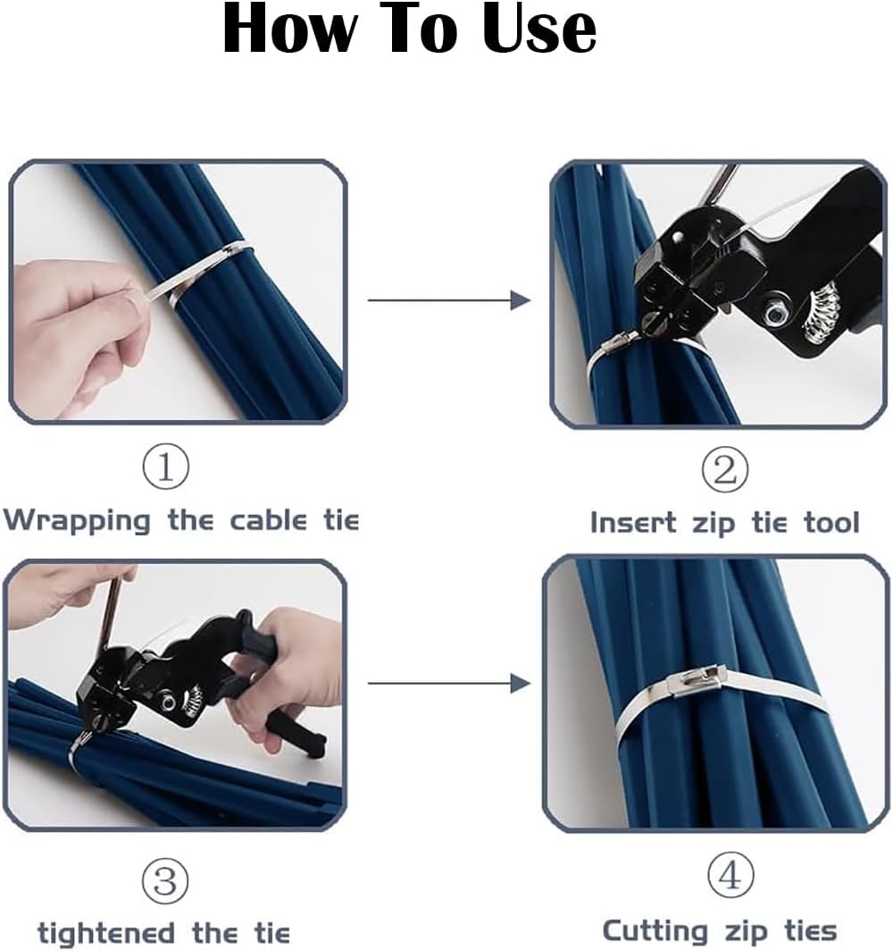 - Heavy-duty steel tool securely tightens and automatically cuts stainless steel cable ties